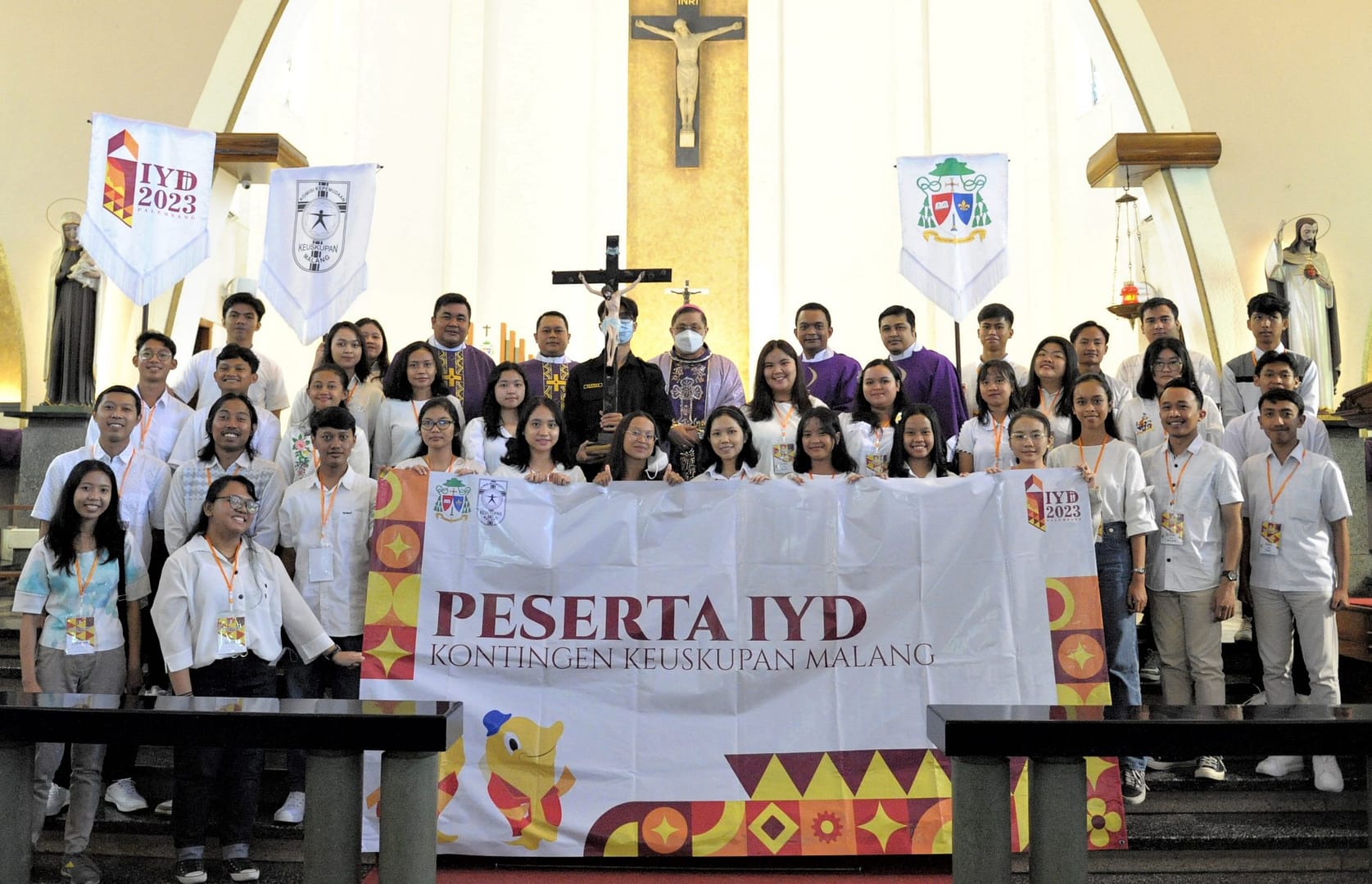 Setelah Pemberkatan salib IYD, Bapa Uskup juga memberkati para peserta IYD yang akan berangkat sebagai kontingen dari Keuskupan Malang.