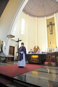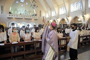 Perayaan Minggu Prapaskah ketiga kali ini berbeda dengan Perayaan Ekaristi minggu-minggu sebelumnya. Perayaan Ekaristi yang berlangsung di gereja Katedral Malang ini, dipimpin langsung oleh yang mulia Mgr. Prof. Dr. Henricus Pidyarto G., O.Carm, selaku Uskup Malang didamping empat imam konselebran, yakni RD. Y. Dimas Caesario, RD. Ag. Devit Setiawan, RD. P. Fajar Ariwiyatno, dan RD. St. Jemmy F. Tak hanya itu, perbedaan perayaan ekaristi kali ini juga tampak dari hadirnya 31 orang muda dari berbagai paroki dan kuasi di Keuskupan Malang. Hadir pula dalam perayaan ekaristi kali ini, perwakilan pengurus OMK dari Paroki Blimbing, Pasuruan dan Ijen.