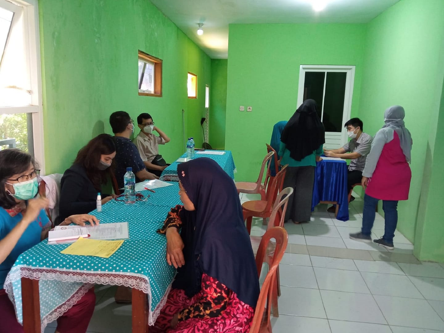 Ibu-ibu Kader PKK tersebut, ikut terlibat aktif dalam pelaksanaan mulai dari penerimaan, registrasi pasien, hingga mengantar ke dalam ruang periksa dan penyampaian obat.